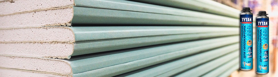 Сделать стенки ровнее можно различными методами и одном из популярнейших стал монтаж гипсовых листов. ГКЛ в этом случае сразу две функции выполнит – плоскость станет значительно более гладкой и одновременно будет возможность проложить коммуникации за собранной конструкцией. При этом, устанавливать сложный каркас совсем необязательно, можно просто приклеить гипсокартон как на клей, используя для этого монтажную пену. Для этих целей подойдет пено-клей TYTAN Professional GUN, о использовании которого вы узнаете из нашей статьи.
