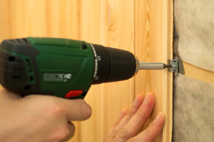 • Последняя монтируемая панель, при необходимости, уменьшается в ширину — ее вымеряют, расчерчивают и лишнюю часть отпиливают с помощью лобзика. В углу последнее полотно прикручивается к обрешетке или стене саморезом.
