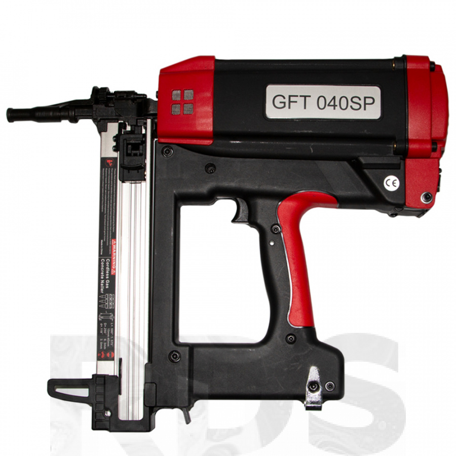 Пистолет газовый монтажный GFT 040SP промышленного класса с регулируемой глубиной забивания. Работает с дюбель-гвоздями по бетону, металлу, кирпичу в пластиковой кассете длиной от 15 до 40 мм. Рекомендованная скорость забивания - до 3 гвоздей в секунду.