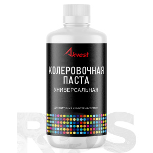 - Колеровочные пасты Akvest прекрасно совместимы со связующими базовых красителей, не образуют сгустков и плёнки.
