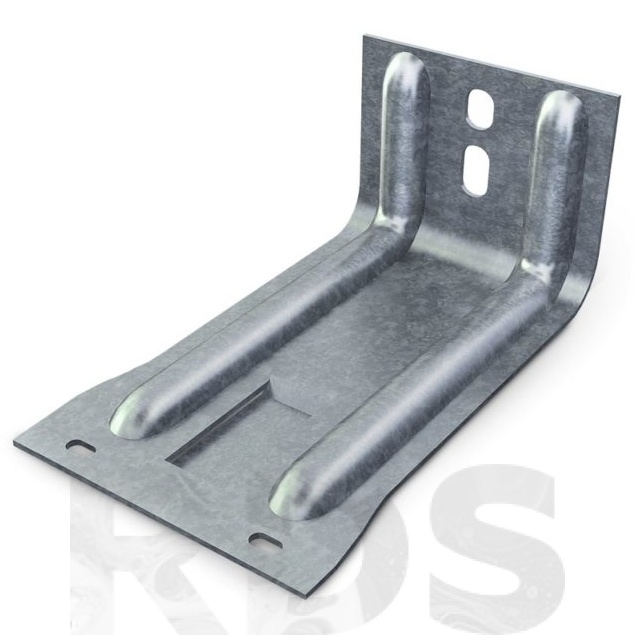 Кронштейн усиленный обеспечивает повышенную надежность крепления фасадной конструкции. Ширина составляет 250 мм, а высота прилегающей к стене части («пятки») равна 80 мм, что позволяет выдерживать большие нагрузки. Кронштейн имеет два ребра жесткости и отверстие для крепления к несущему основанию.