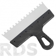 Шпатель зубчатый 250 мм 10х10 мм, нержавеющая сталь, пластиковая ручка - фото