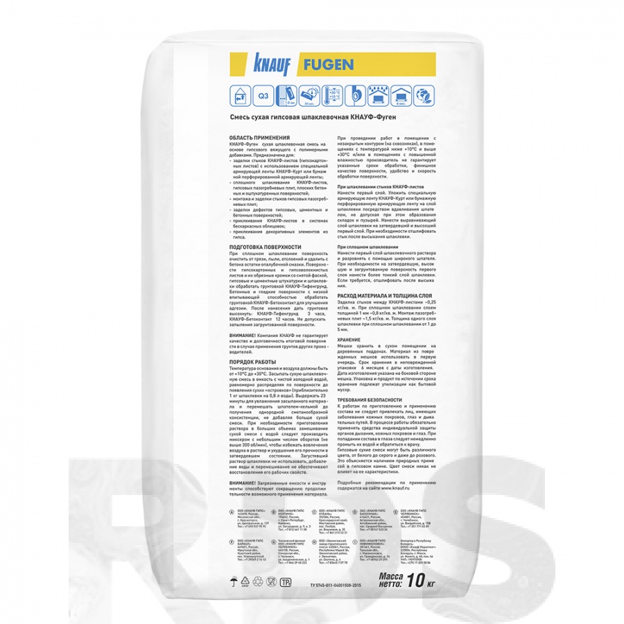 Шпатлёвка гипсовая универсальная "Фуген", 25 кг, Кнауф
