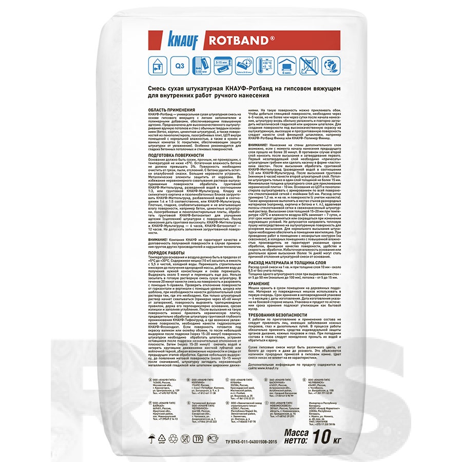 КНАУФ-Ротбанд - универсальная сухая штукатурная смесь на основе гипса с полимерными добавками, обеспечивающими повышенную адгезию.